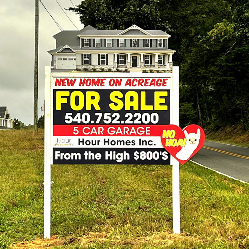 We offer everything from standard 18×24 post-mounted signs to large 4×4 and 4×8 panels for commercial properties or land sales.